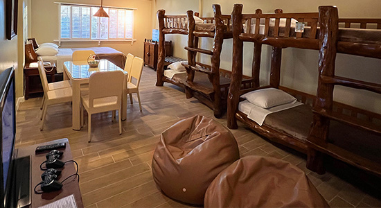 These charming and spacious rooms are ideal for large families. Equipped with a TV and DVD player, gaming machine for the children, bean bags, a dining area and complimentary minibar beverages and light snacks upon arrival. Located on the second and third floors, but lacking a balcony and views are impaired. Please note that guests are requested to bring their own DVD's.