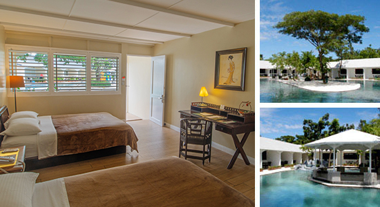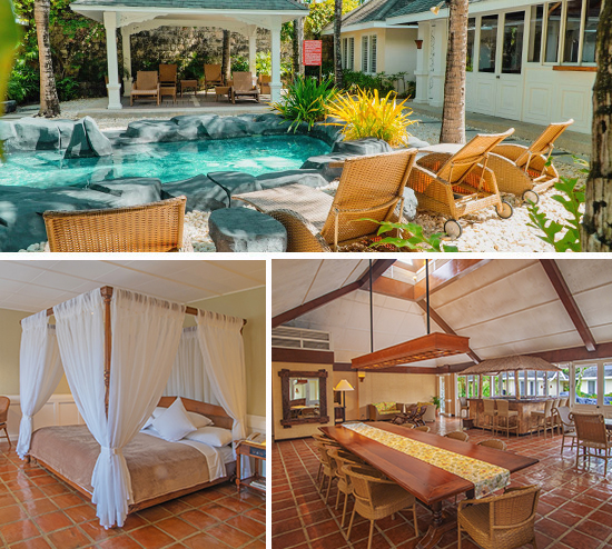 A cabana-type suite with 4 detached bedrooms, private dipping pool and gazebo. Also with an air-conditioned Great Hall with bar, powder room, and lounging areas, ideal for meetings or family gatherings. Includes: