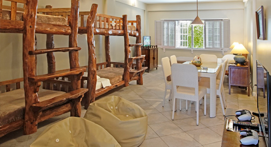 Located on a separate floor in a building in the heart of the resort, close to Mogambo Springs Spa and most restaurants and facilities. Smoking is allowed inside the room and in the corridors. These rooms have no balcony and not much view, but accommodate up to six adults.